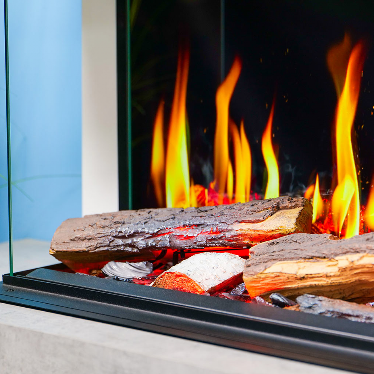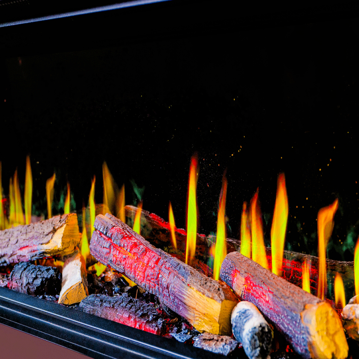 - Dark Screen Programme, with darker rear glass than our other electric ranges creating more vibrant flames and spotlighting the logs.