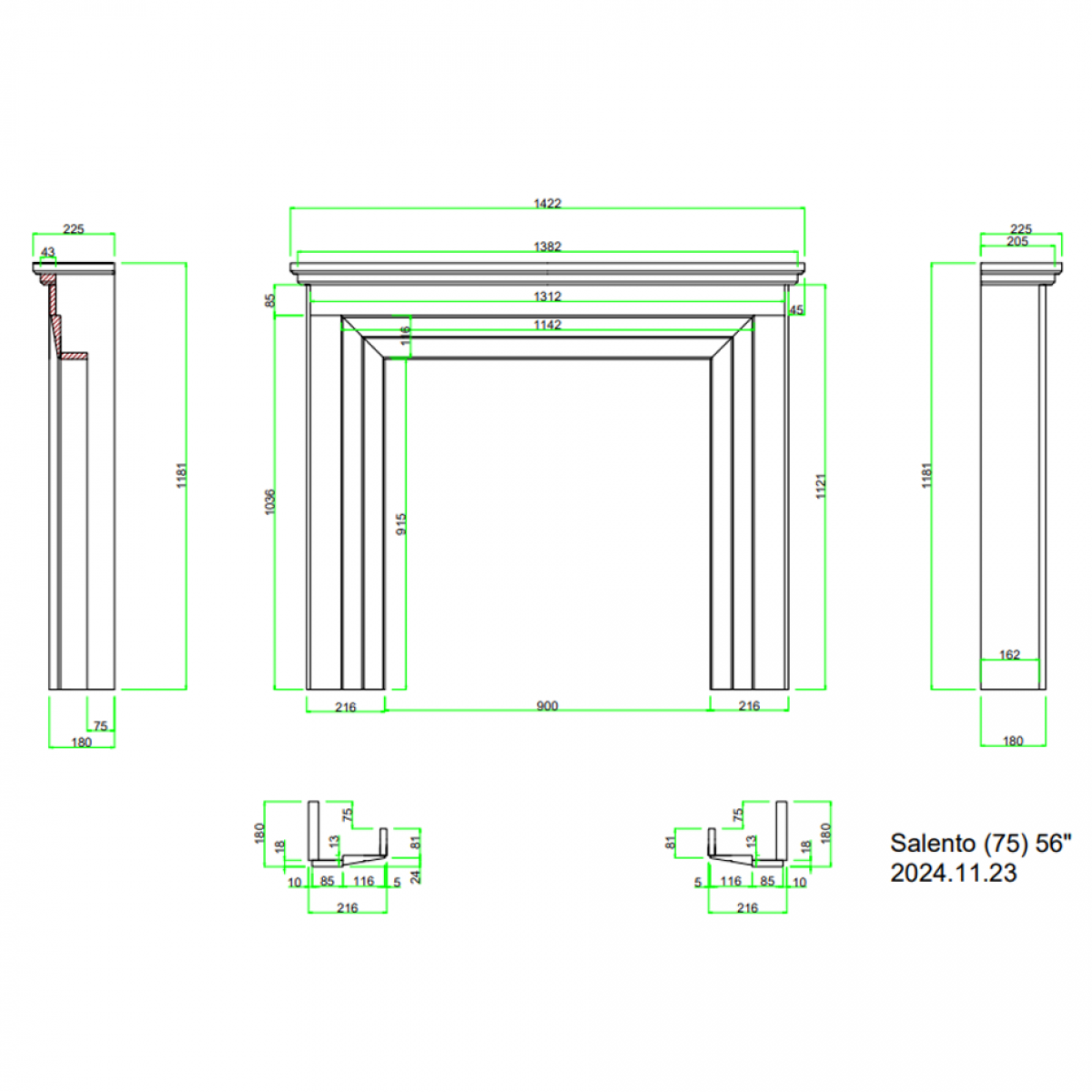 - Product Code: Salento 75 Polished Fireplace Surround 56'' Alpine White Marble